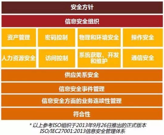 ISO組織于2013年9月26日,推出了最新的版本ISO/IEC27001:2013信息安全管理體系標準,其框架圖如下: