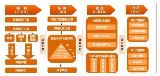 基于PDCA循環框架構建信息安全管理體系,通過規劃、設計實施、監控審計、以及持續改進,保證體系運作的有效性和長效性,真正實現信息安全的持續改進和優化,從而保障組織的業務安全。