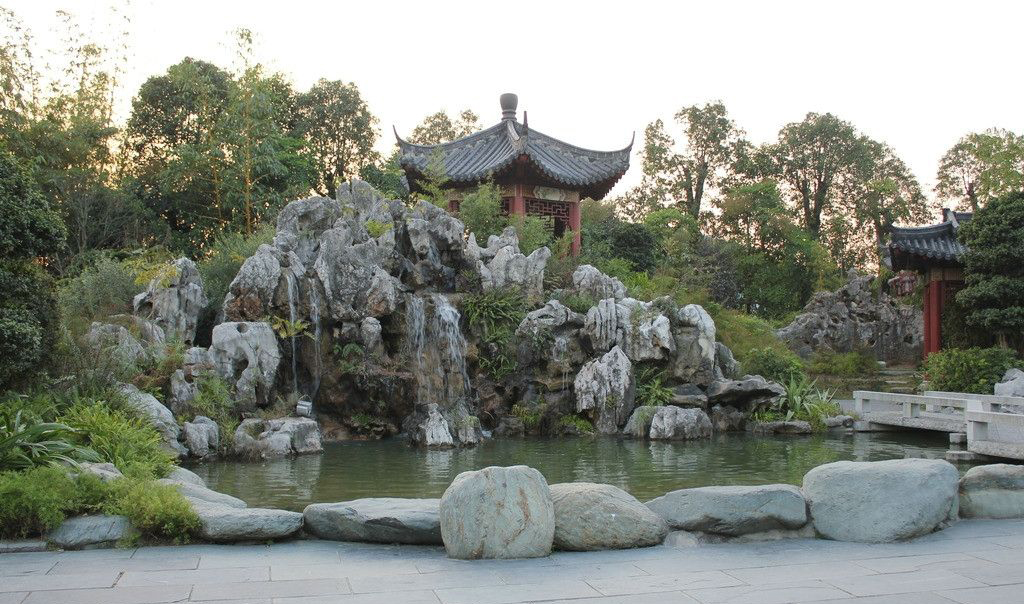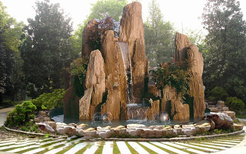 我國傳統的庭園景石造型,大致可分為兩類:一為塑物型,一為筑山型。前者借意人間物像,雖幾分形似,妙在神傳,有若中國寫意畫,介乎似與不似之間;后者仿作自然山體,雖一峰一石,亦講究氣勢。
