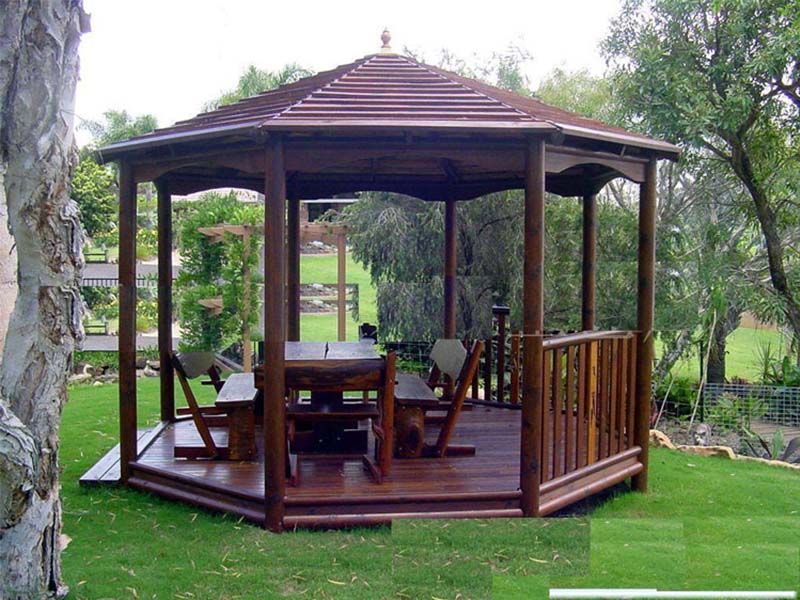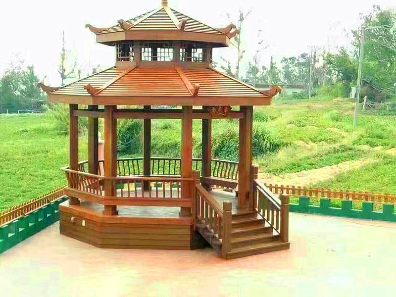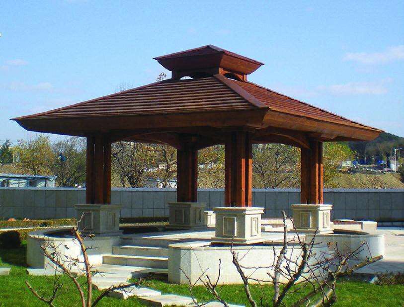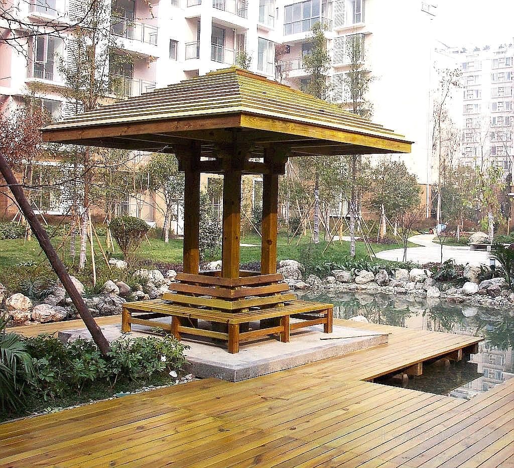 防腐木涼亭,是指用防腐木組建而成的涼亭。所使用的防腐木是經過特殊防腐工藝處理后的木材,具有防腐爛、防白蟻、防真菌的功效。故此類涼亭穩定性強、使用期限長、性價比高。專門用于戶外環境的露天木地板,并且可以直接用于與水體、土壤接觸的環境中,是戶外木地板、園林景觀地板、戶外木平臺、露臺地板、戶外木棧道及其他室外防腐木涼棚的首選材料。
