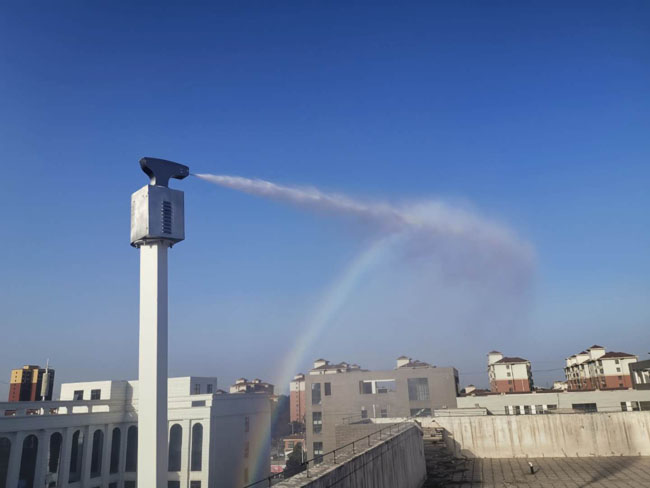 霧樁旋轉噴頭是一種新型高壓噴霧機,它的噴頭可以360度旋轉噴灑,也可以自由設置旋轉角度,噴射距離在20~50米之間,對于道路、礦山、工地等室外場所具有很好的除塵、抑塵效果。