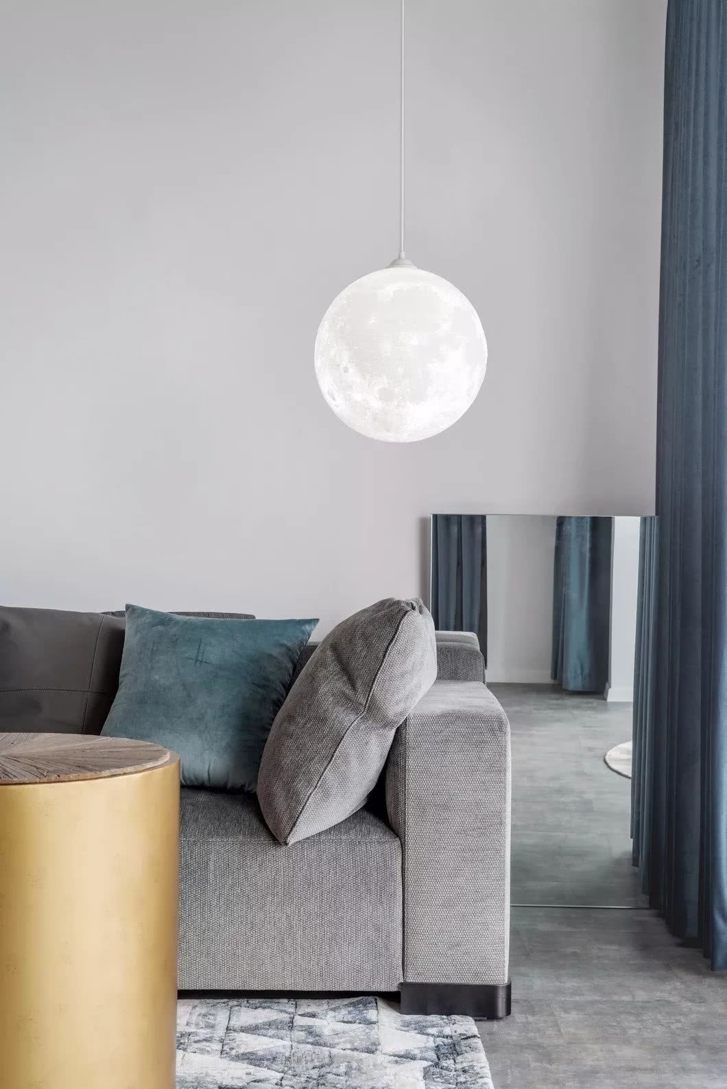 個(gè)性的吊燈與金屬的茶幾以及布藝的沙發(fā)搭配,