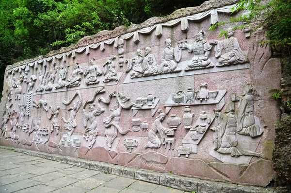 平面上的雕鑿與塑造,使砂巖浮雕可以綜合雕塑與繪畫的技術(shù)優(yōu)勢,保持手法上的多樣性和多樣化。二維空間中的透視縮減,陪襯主體形象的背景刻畫或虛擬,使砂巖浮雕的塑造語言比之其它雕塑尤其是圓雕,具有更強的敘事性同時也不失一般雕塑的表現(xiàn)性。砂巖雕塑一般是附屬在另一平面上的,因此在建筑上使用更多,用具器物上也經(jīng)??梢钥吹?。