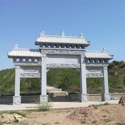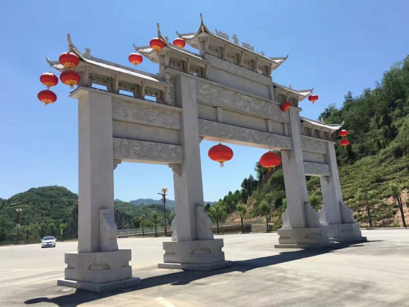 大型石雕牌樓則可映襯、渲染周圍環(huán)境.使其他建筑物更為絢麗多姿,如院學(xué)府石雕牌樓、牌坊、文廟武廟石雕牌坊、寺廟壇觀石牌坊、陵園墓地石牌樓、勝景勝跡牌坊、豪門宅第石牌樓、衙署府第石牌坊等,除起標(biāo)識、空間分界作用外,還能起到裝飾美化作用。