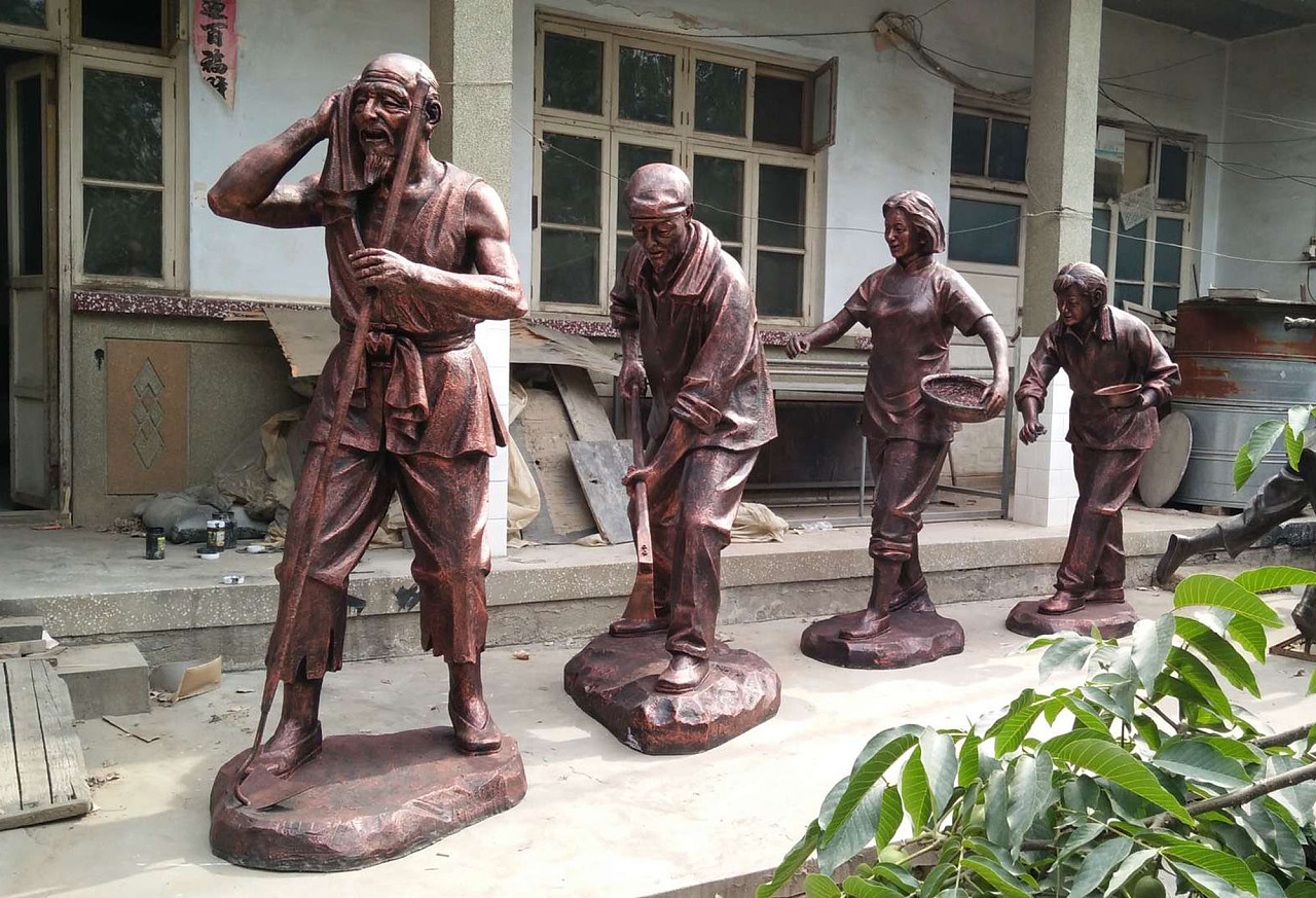 鍛銅雕塑:鍛銅雕塑相比鑄銅雕塑用料比較嚴格,以銅板為主要原材料,內附鋼骨架支撐,部分復雜雕塑需要制作一比一模具進行鍛造,部分簡單造型可以根據放型骨架鍛造。