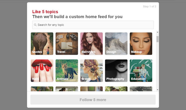 剛登錄網(wǎng)站,會讓你選擇5個你想看的領(lǐng)域,然后為你什么圖片推薦