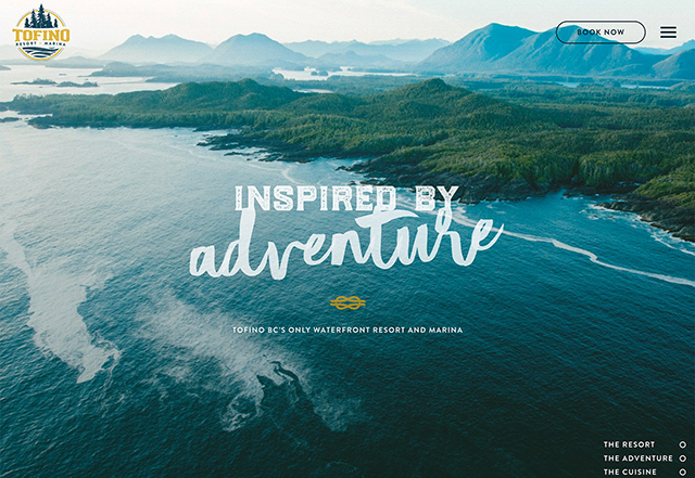 Tofino度假村吸引用戶使用的是一個(gè)偉大的形象和有趣的字體。“現(xiàn)在的書(shū)”呼吁行動(dòng)是在頂部的角落,用戶通常會(huì)尋找導(dǎo)航,但菜單塞在一個(gè)漢堡包圖標(biāo)中,CTA是焦點(diǎn)。
