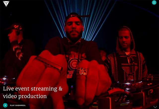 磁通廣播采用一種更有電影經(jīng)驗(yàn)的視頻方式。主頁(yè)有完整的屏幕視頻剪輯,短文本和只有幾個(gè)小的元素在屏幕上。用戶感覺(jué)他們是在看這個(gè)設(shè)計(jì)的視頻,而不是跳轉(zhuǎn)到網(wǎng)站的首頁(yè)。再一次,導(dǎo)航被塞進(jìn)一個(gè)漢堡圖標(biāo)中,彩色圓圈幫助它更醒目一點(diǎn),右下角的一個(gè)小動(dòng)畫(huà)箭頭鼓勵(lì)用戶在看完視頻循環(huán)后滾動(dòng)。