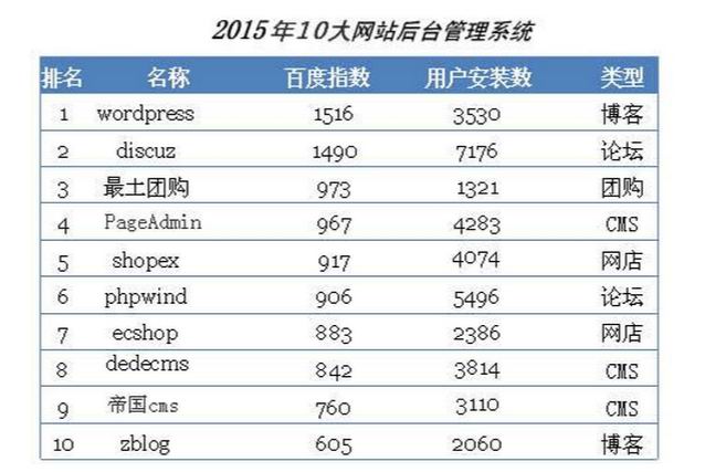 我們?cè)谥谱骶W(wǎng)站時(shí)候基本都會(huì)去下載網(wǎng)站后臺(tái)管理系統(tǒng)來用,這為我們節(jié)省了很多開發(fā)程序的時(shí)間和成本,但是大大小小的網(wǎng)站系統(tǒng)很多,我們需要反復(fù)權(quán)衡,功 能、執(zhí)行效率、安全性、后續(xù)升級(jí)服務(wù)都是要考慮的關(guān)鍵要素。我們根據(jù)百度指數(shù)和萬網(wǎng)提供的主機(jī)安裝數(shù)據(jù),特別發(fā)布十大網(wǎng)站后臺(tái)管理系統(tǒng)排行榜,能較大程度上反應(yīng)網(wǎng)站系統(tǒng)的受歡迎程度。