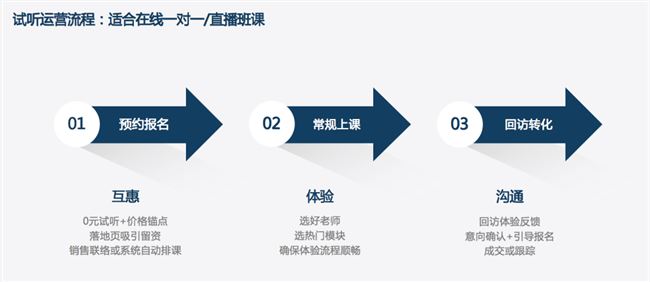 最后就是回訪用戶轉(zhuǎn)化。試聽課的目的還是希望通過產(chǎn)品體驗來影響用戶決策,但這樣的成功率并不高,需要銷售進行課堂反饋,利用溝通來增加轉(zhuǎn)化概率,最好方式是拿著課堂檢驗報告,針對出現(xiàn)的問題與用戶交流,從而引導(dǎo)需求和確認意向。