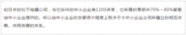 這是根據中小企業力量單薄,產品單一的特點制定的經營戰略。大企業為了獲取規模經濟效益,必然要擺脫“大而全”的生產體制約束,轉而求助于社會分工與協作。這就增加了大企業對中小企業的依賴性,同時也為中小企業提供了長期的生存和發展的基礎,所以這種相互依賴關系被稱為生存互補戰略。中小企業在決定自己的生產方向時,可接受一個或幾個大企業的長期固定的訂貨,與大企業建立緊密的分工協作關系。