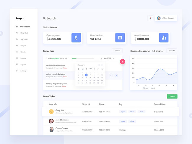 CRM 即 Customer relationship management,翻譯過來是客戶管理管理系統。CRM 是企業對客戶進行信息化管理的一種形式,用互聯網技術實現對客戶信息進行收集、管理、分析,對企業的銷售、服務、售后進行監控。常見的功能有員工日程管理、訂單管理、發票管理等。我們在設計這種項目時一定要將信息按所屬的邏輯關系分類,加強對比、對齊、重復、親密性的原則,使操作者在使用的時候感覺到便利。